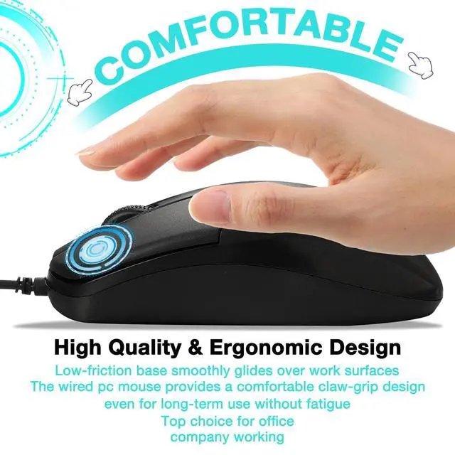 Wide Compatibility: the wired USB computer mouses compatible with operating system Windows 7/ 8/10/ XP/ Vista 7/ 8/ Linux without drivers or software; It is a great wired mouse compatible with laptop/ computer/ PC/ chromebook/ notebook/ Macbook and other device