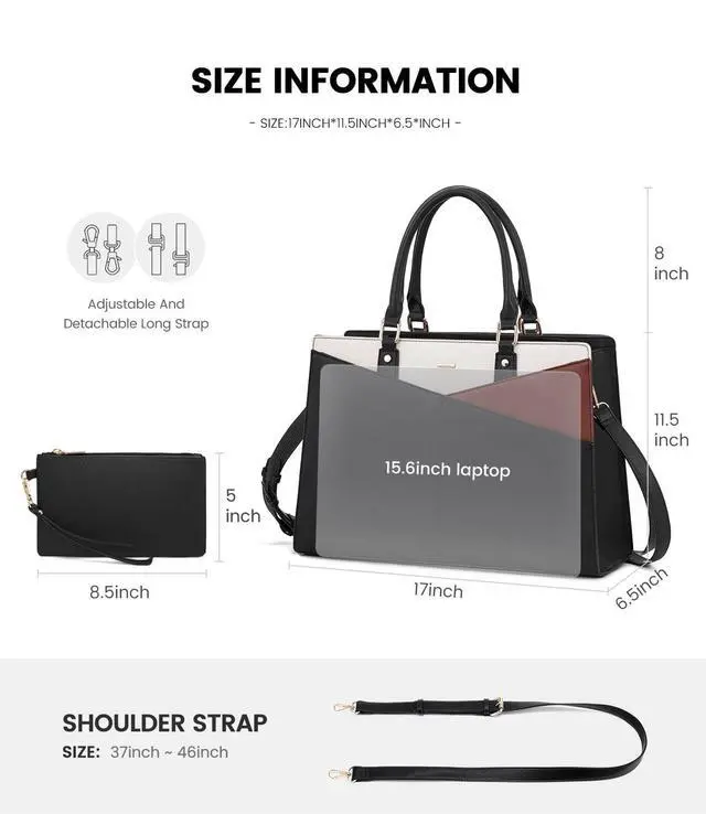 Weight: 2.58 lbs. The distance from the top handle to the tote bag is 8''. The adjustable shoulder strap is 37 to 46 inches long. It is large enough to keep your daily items organized. Its minimalist and chic appearance makes it suitable for both formal and casual occasions. ^^ One Bag Fits all OccasionThe elegant and unique design makes it very suitable for work, office, meeting, business trip, travel, coffee shop and other places as women's briefcase, teacher's handbag purse, computer tote bag or women's messenger bag. Simple color matching are easy to match with various clothing styles. ^^ Good Choice LOVEVOOK attaches great importance to product quality, The tote bag is ideal for personal use or as a fantastic gift for Christmas, Mother's Day, and Valentine's Day.