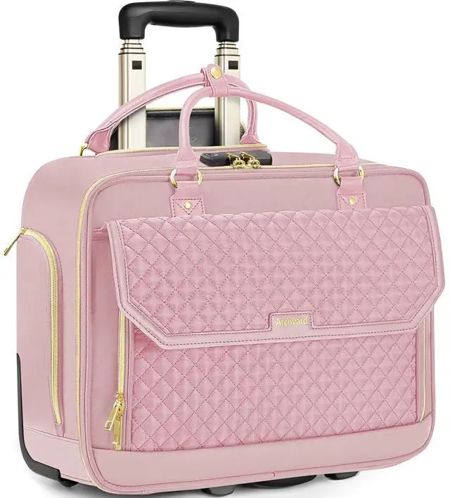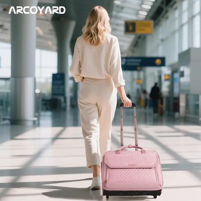 Durable Handle & Smooth WheelsThis rolling laptop bag is equipped with a sturdy aluminum telescopic handle that locks securely with a simple press. The high-density, wear-resistant, silent rubber wheels allow for smooth and quiet movementeven on uneven surfaces. Whether you're commuting or catching a flight, this rolling laptop bag women eliminates hand and shoulder strain, making it a long-lasting companion for daily or business use ^^ Large Capacity laptop bag with wheels for Daily & Travel Needs This briefcase with wheels features a spacious main compartment ideal for 23 day tripsperfectly sized to carry clothes, books, or folders.