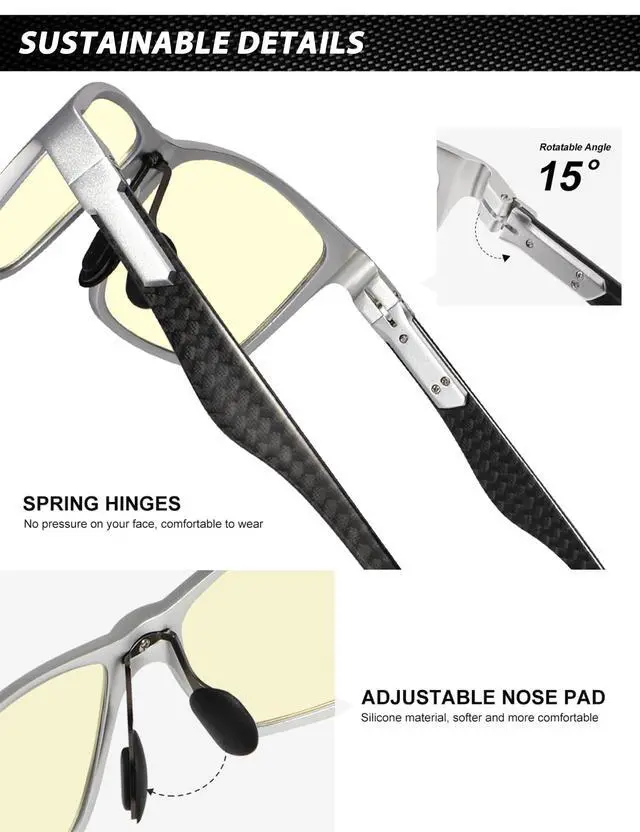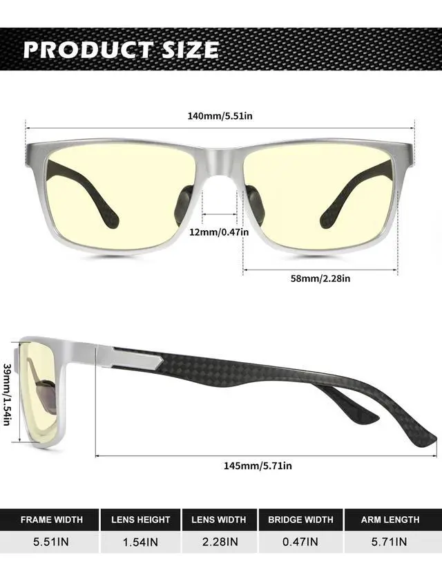 • Premium Temple Material: With superior Al-Mg and carbon fiber composite temple, this type of blue light blocking glasses for men is ultra-light than pure metal frame, also more sturdy. No more worries about broken temples. As more suitable for anyone who often work or play games by the computer, do not miss this pair of practical and classic blue blocker glasses.