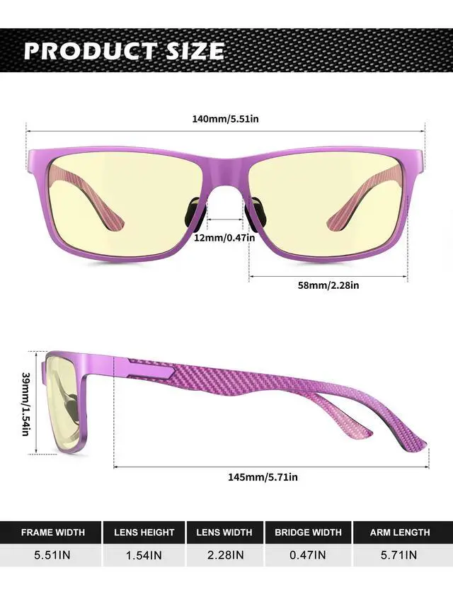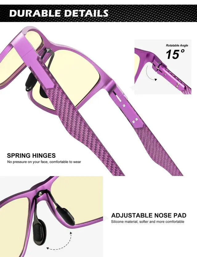 ^^ Premium Temple Material: With superior Al-Mg and carbon fiber composite temple, this type of blue light blocking glasses for men is ultra-light than pure metal frame, also more sturdy. No more worries about broken temples. As more suitable for anyone who often work or play games by the computer, do not miss this pair of practical and classic blue blocker glasses. ^^ Take Care of