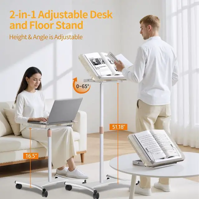 Desk & Floor: Experience versatility with this laptop stand that seamlessly transitions between a desktop and floor stand. Ideal for laptops, books, projectors, or as a podium for presentations, it effortlessly enhances your workspace with its flexible design. ^^