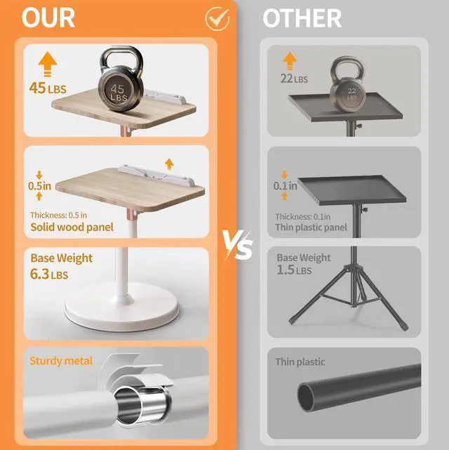 ^^ Rock-Solid Stability: Constructed from durable metal, this laptop stand holds up to 45lbs without tipping. Built to last, it's ideal for heavy laptops, projectors, and more. Place your equipment with confidenceit's secure and stable. ^^