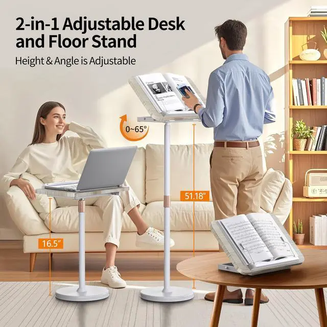 Dual Use Stand: This versatile laptop stand functions both as a desktop and a floor stand. Both the tray and base are equipped with anti-slip pads to ensure stability on various surfaces and prevent sliding. Whether for office work, study, or entertainment, it provides a stable and comfortable experience ^^ Height and
