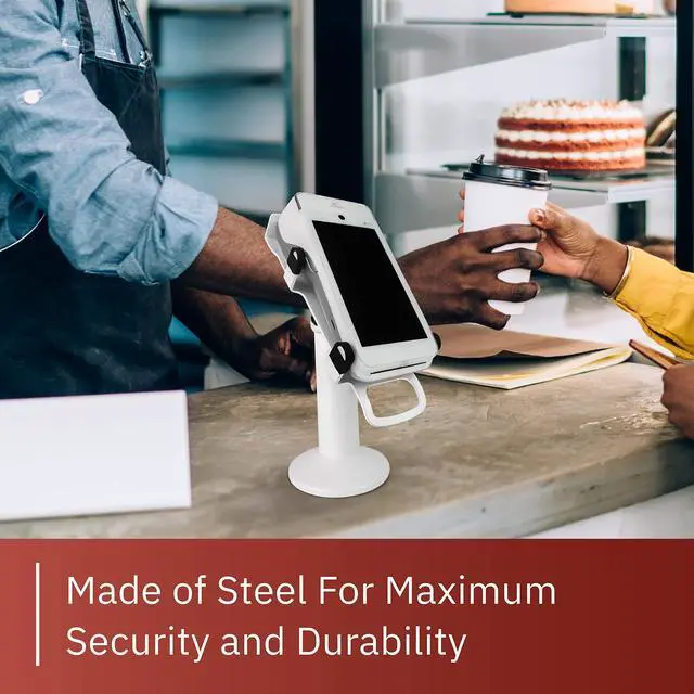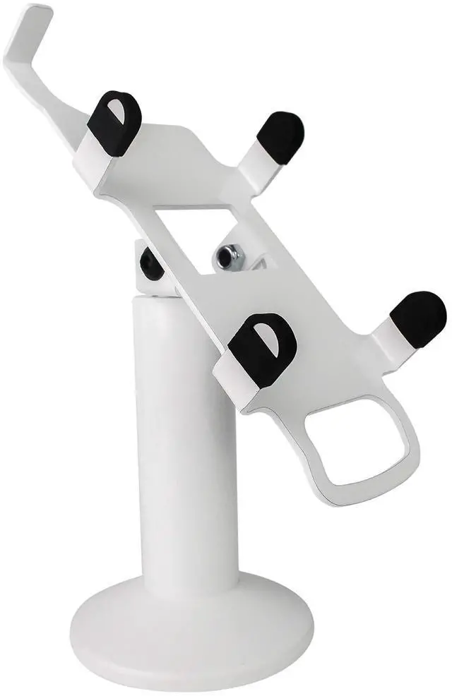 The Swivel and Tilt PAX A920 / A920 Pro stand is a metal POS system holder custom designed for the PAX A920 payment terminal to make your in-store card purchases more stable and secure ^^ This stand can tilt up to 60 degrees and swivel a full 190 degrees, making swiveling your POS terminal from customer to merchant easier to enhance customer experience ^^ Mount for terminal allows for more seamless customer interactions with less risk of theft or damage to your equipment ^^ Flange cover conveniently hides wires and mount keeps your terminal secure for minimized chances of damage and theft ^^ Comes with screws and an adhesive pad for two methods of securing your holder; terminal NOT INCLUDED; fits PAX A920 / A920 Pro POS terminal; pole stands 7 inches tall; also compatible with any round Discount Credit Card Supply Freestanding Plate