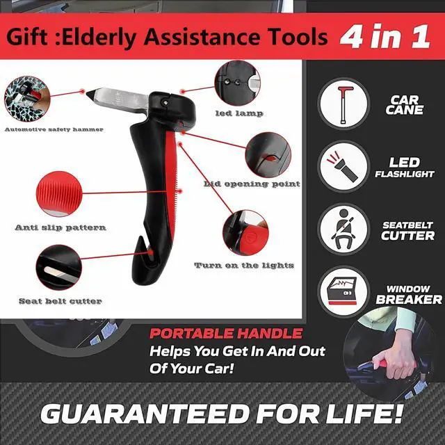 Fully adjustable 360 degrees: Tray table height adjustment from 23 to 36 inches; Support handle height is adjusted from 26 to 42 inches; Base length adjustment from 26 to 40 inches; Refer to our installation videos and instructions to make sure they fit your furniture ^^ Auxiliary giftsFive in one Retractable Leg car Support Handle, Elderly Portable car Door Assist Handle, Multifunctional car Handle with LED Light, Safety Hammer, Safety Belt Cutter