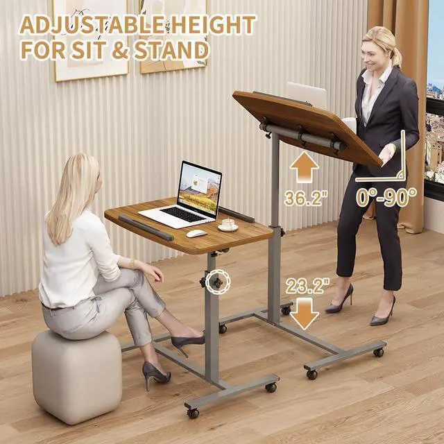 Adjustable Laptop Table and Movable Desk for Home Office If you are looking for laptop table for couch, small laptop desk, or a mobile desk workstation, this laptop table is all you need! Its compact design lets you move around with ease, allowing you to concentrate on work to finish more tasks in less time. Our computer cart with wheels or rolling laptop cart not only saves you space but gives you the perfect balance of convenience and functionality. Made from heavy-duty MDF panels and moisture-resistant PVC laminate veneer in a sleek graphite finish, our small rolling desk ensures durability and longevity.