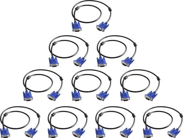 10 pack VGA to VGA Cable 3 feet - Supports resolution up to 1080P (Full HD) The VGA HD15 male to male Cable allows you to connect your projectors, Displays, TVs, monitors with VGA interface to your Laptop or PC for high-quality videos or photo. VGA connectors with screws not only support secure connection but also easy plugging & unplugging.