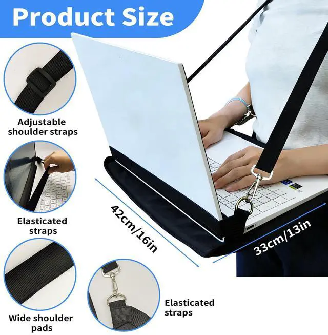 Product Size: Laptop Harness is about 42*33cm/16*13in Laptop Harness*1 Due to manual measurement, there may be slight variations in dimensions and weight. Due to differences between displays, there may be slight varia