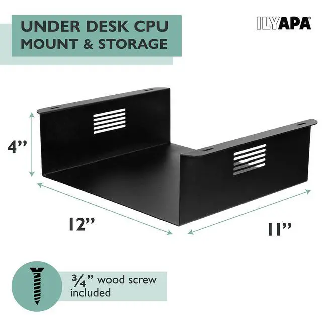 Mount your PC wall mount using the provided (4). 75"wood screws. ^^ Multi Use - Ilyapa CPU mounts can be used in your home or office to hold audio interfaces, DVIs (slim client), or other devices and workstations. Our under desk mount can also be used to help organization, storage, or cable management.