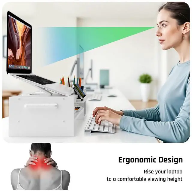 Elevate Your WorkspaceAdjustable Design: Multiple height and angle adjustments ensure ergonomic posture, reducing neck and shoulder strain.