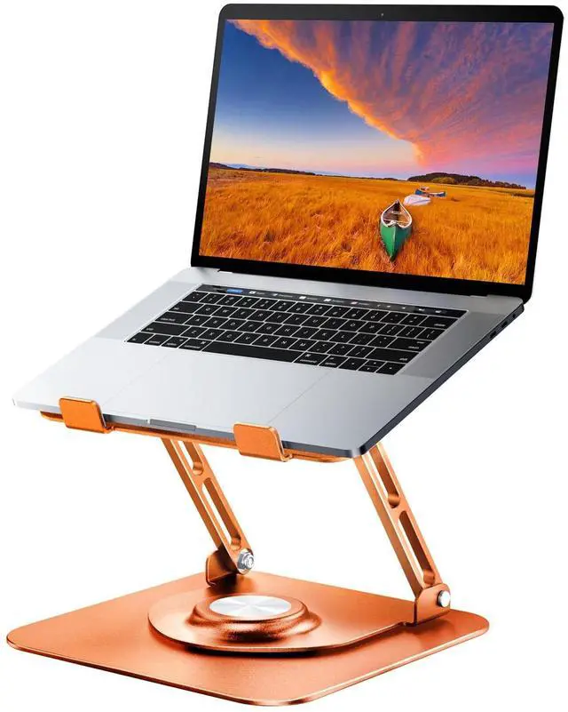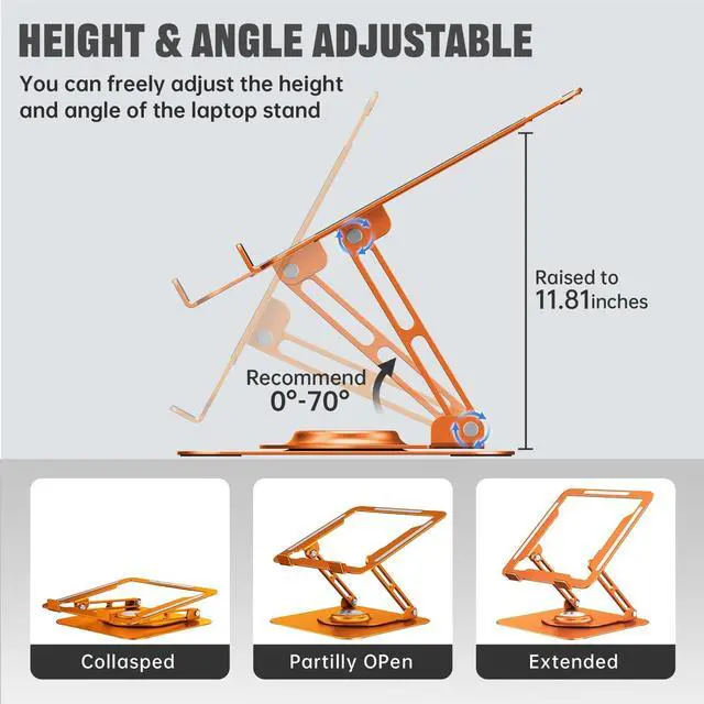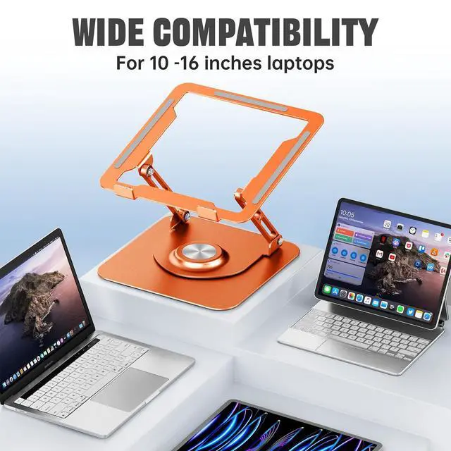 JOYEKY Laptop Stand for Desk, Adjustable Computer Stand with 360 Rotating Base, Ergonomic Laptop Riser for Collaborative Work, Foldable & Portable Laptop Stand, fits for All 10-16" Laptops (Orange)