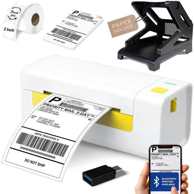 AMAZING GIFTS ]: Were thrilled to include some fantastic gifts with your portable thermal shipping label printer! Everything you need to get your business up and running. Youll receive 50 sheets of 4x6 shipping label paper, 50 stickers of 2-inch round paper, a convenient paper holder, and a USB adapter C for easy connection to your MacBook. As an added bonus, weve included an incredible eBook titled Master Your Mindset for Entrepreneurs to help you stay motivated and focused on your business goals. These thoughtful additions are designed to help you start printing, shipping, and growing your business right away. Enjoy your new printer and starter kit! ^^ [