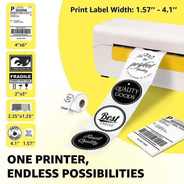 USER-FRIENDLY DESIGN ]: Our Portable label printer utilizes advanced thermal printing technology, eliminating the need for ink or toner. Say goodbye to messy spills and clogged printer heads. It supports labels from 1.57 to 4.1 inches, making it perfect for envelopes, addresses, barcodes, packaging, shipping and home or office labelsprint any label you need! ^^ [