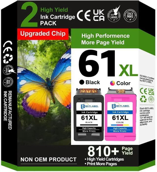 ^^ Highly Premium: All 61XL for hp 61 Ink cartridge combo pack are equipped with the latest upgrade intelligent chips. Remanufactured ink cartridge replacement for 61XL has been awarded ISO9001 certification, and we have independent laboratories periodically verify product quality to ensure a smooth user experience.