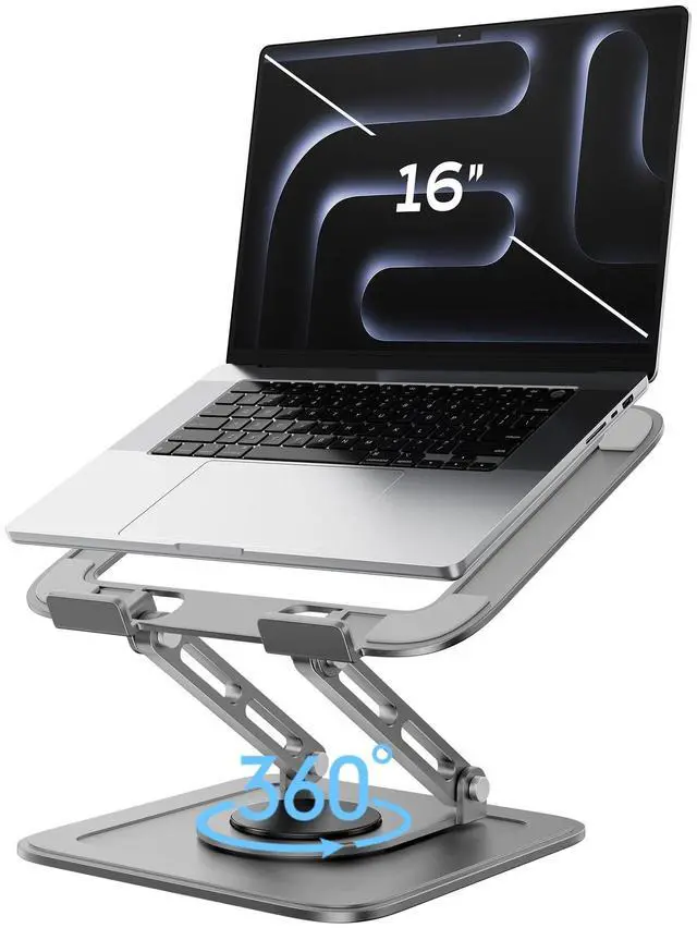 Adjustable Laptop Stand for Desk with 360 Base, Ergonomic Laptop Riser, Mount, Holder Notebook Computer Stand for MacBook Air Pro, HP, Dell, XPS, HP 16" Laptops - Gray