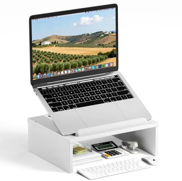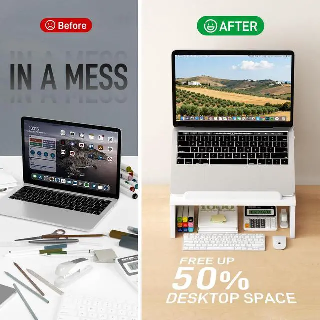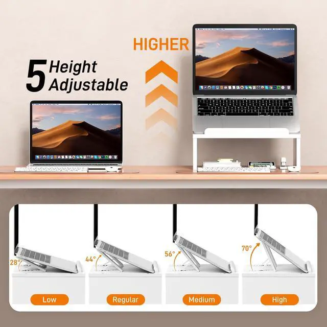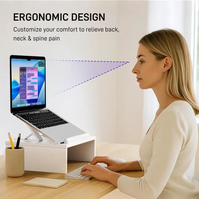 Ergonomic Design: Offers 5 adjustable angles to choose your preferred position, elevating the laptop to an ergonomic viewing level. It helps correct sitting posture, effectively alleviates neck and shoulder pain from long-term use, and enhances work/study comfort.