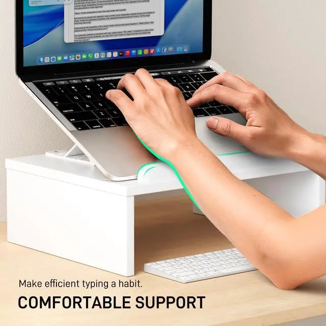& Wrist Protection: Crafted from high-quality materials, it supports about 4kg stably. Equipped with unique heightened rubber wrist pads to reduce wrist fatigue during typing, plus large rubber pads on the upper and bottom to prevent laptop falling and scratches on arms or tables. Suitable for office and home use, and makes an ideal Christmas gift for friends and family.