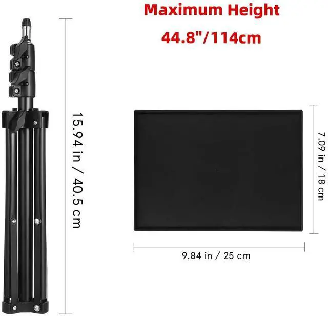 its collapsible structure allows for quick disassembly and storage, making it an ideal portable projector mount for outdoor movie night or business travel without occupying valuable trunk space ^^ Reinforced stability & durability built to last, this heavy-duty projector holder combines a thickened iron rod with a high-strength abs tray, offering superior load-bearing capacity compared to standard plastic models. the tripod base is designed with non-slip rubber feet to ensure maximum stability on various surfaces, protecting your expensive electronics from accidental tips ^^ Adjustable viewing angles achieve the perfect projection or typing position with the fully adjustable tray bracket.