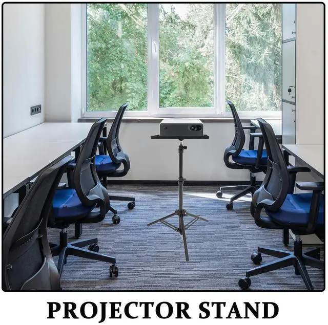 whether you need a slight tilt for a ceiling projection or a flat surface for your laptop, the height-adjustable projector shelf (up to 1 meter) and rotatable platform allow you to the setup for safe and comfortable viewing experience, reducing neck strain during long sessions ^^ Quick & tool-free assembly set up your workstation in seconds. this portable tripod stand is designed for hassle-free installation with no tools required. simply unfold the legs, attach the tray, and secure the knobs. it is the office accessory for professionals on the go, allowing you to focus on your presentation or live stream rather than complicated equipment assembly