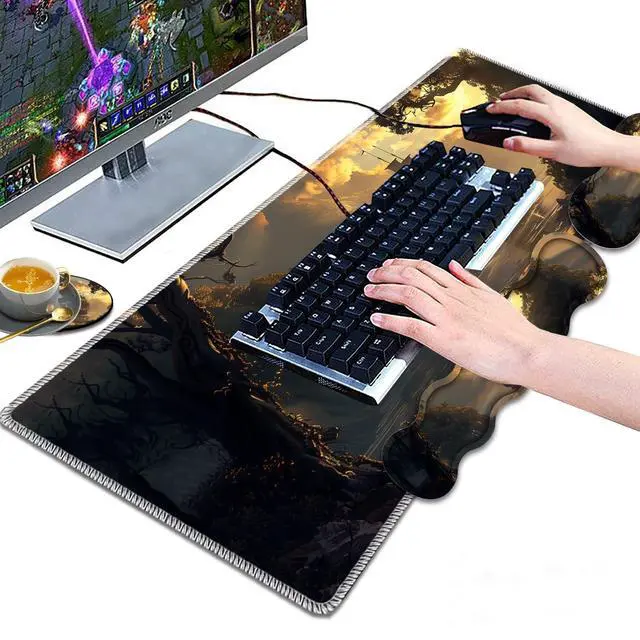 Large tabletop gaming mouse Pad and Keyboard wrist rest set, keyboard and mouse, light up your workspace with fun and beautiful design; Exquisite workmanship, work or play more comfortable.