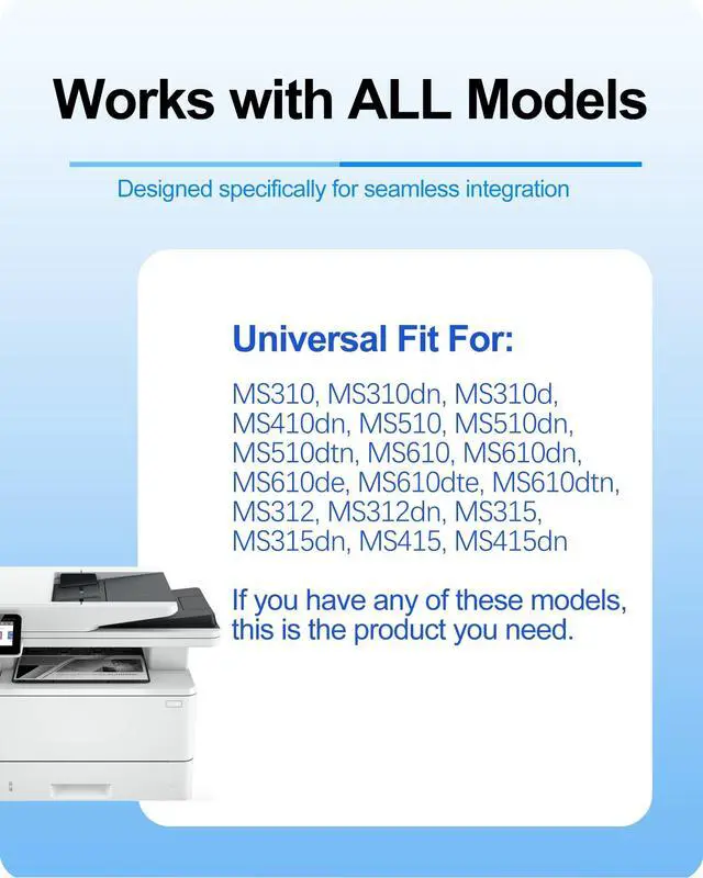 Printer Compatibility: Engineered to work seamlessly with Lexmark MS310, MS310dn, MS310d, MS410dn, MS510, MS510dn, MS510dtn, MS610, MS610dn, MS610de, MS610dte, MS610dtn, MS312, MS312dn, MS315, MS315dn, MS415, and MS415dn printers. Ensures easy installation and flawless operation. ^^