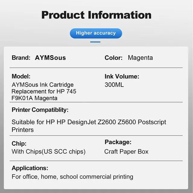 Ink Volume: 300ML Magenta Ink with SCC chip, has the same high page yield as the original ^^