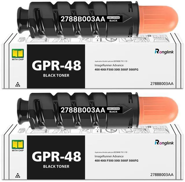 Latest Smart Chip Technology: The GPR-48 black toner cartridges are equipped with an advanced chip that supports the latest printer firmware versions, ensuring seamless and dependable integration between the printer and cartridge.