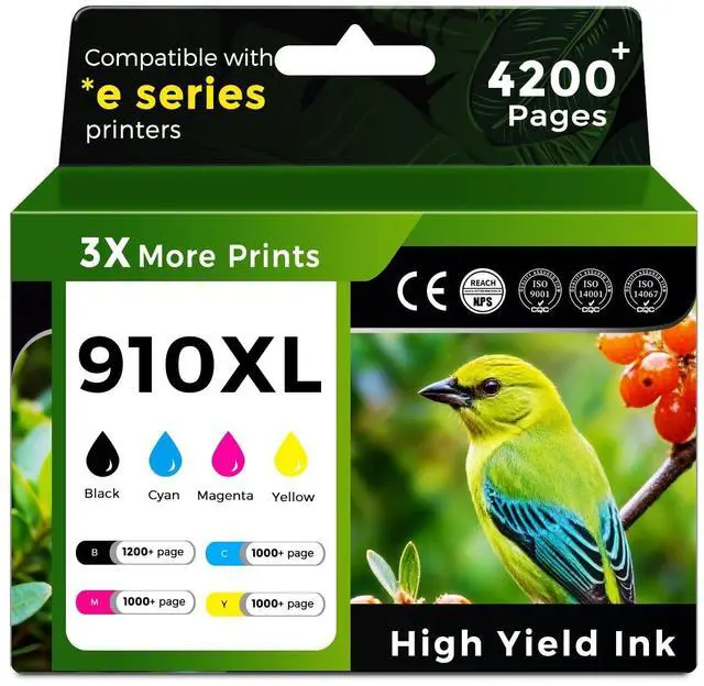 What You Get: 910XL Black and Color Ink Cartridge Combo Pack Package Contents 1* 910XL Black, 1* 910XL Cyan, 1* 910XL Magenta, 1* 910XL Yellow and a user guide ^^ The 910XL Ink Cartridge Compatible *E