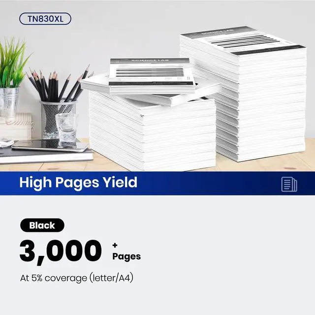 Page Yield: Up to 3, 000 Pages Per TN830XL TN830 xl Toner Cartridge(at 5% coverage), 6, 000 Pages Total ^^ Ideal for
