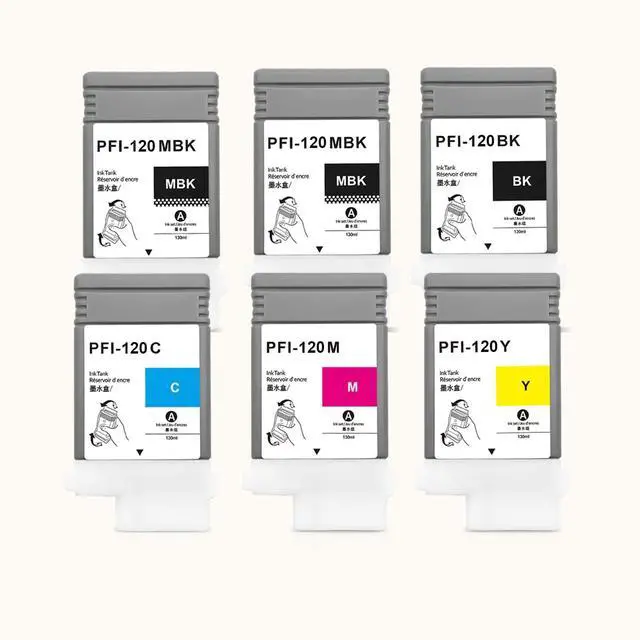 Package Contents: PFI-120 Ink Tank Set (6Pack, 2Matte Black, 1Black, 1Cyan, 1Magenta, 1Yellow)