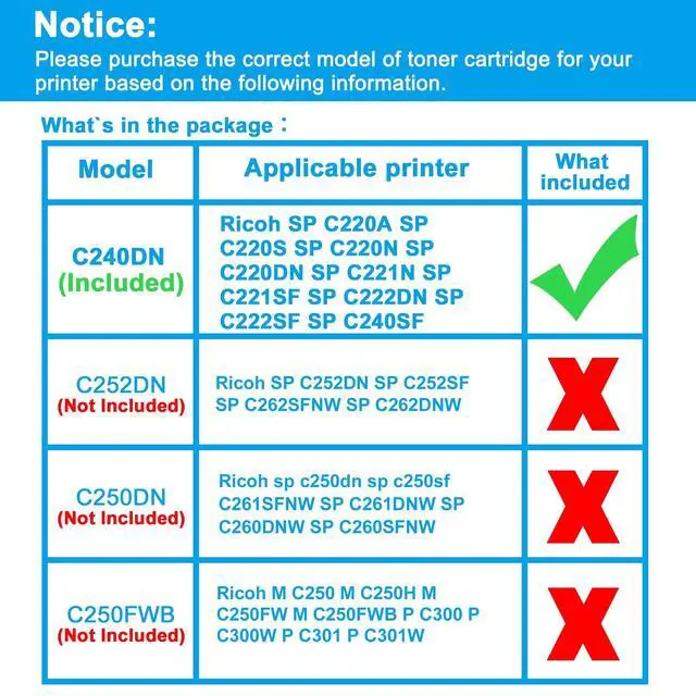 ^^ Compatible Printers: Replacement for Ricoh SP C220A SP C220S SP C220N SP C221N SP C221SF SP C222DN SP C222SF SP C240SF C220DN ^^