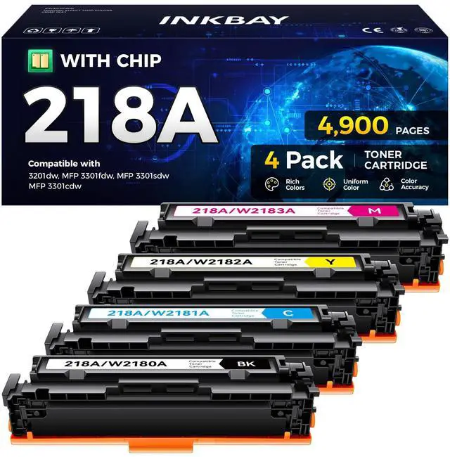 Product Name: 218A for 218A 218X W2180A W2180X Toner Cartridges Combo Pack Work with Color Laserjet Pro 3201 3201dw MFP 3301 3301cdw 3301fdw 3301sdw Printer - High Yield, Black Cyan Yellow Magenta ^^