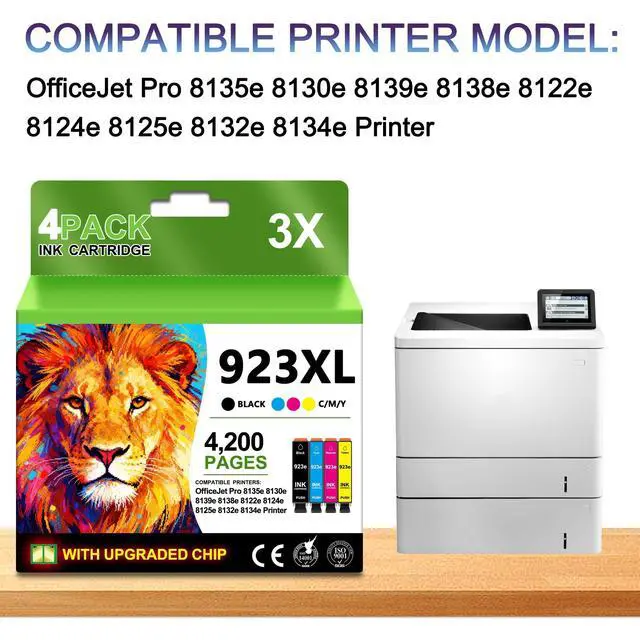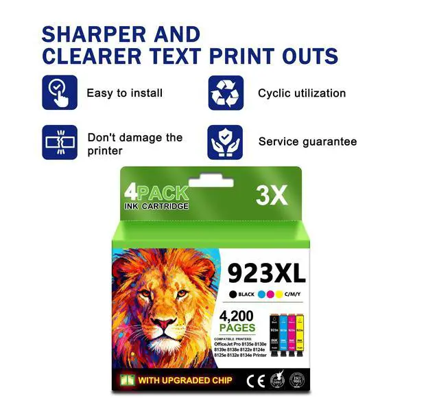 Page Yield: Black is 1200 Pages per Ink Cartridge and Color is 1000 Pages per Ink Cartridge (at 5% coverage Letter A4). ^^ 923 cartridge combination is compatible with specific models of printers to ensure a perfect match with your printer. Suitable for high-print scenes, such as offices, schools, studios, etc. High quality print results, capable of presenting clear, colorful images and text. Large capacity design, reduce the frequency of changing ink cartridges, improve work efficiency. ^^ T2toner provides quality after-sales service, including product quality assurance. If customers have questions, they can contact customer service for support at any time. Timely cartridge replacement and repair services ensure that your printing work is not affected.