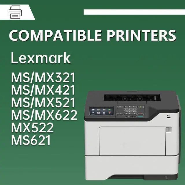 High Page Yield - Package includes 1pc 56F1000 toner cartridge, toner coverage 5%, 6000 pages, efficiency has increased by 20% ^^ 100% Printer Compatible - 56F1000 toner cartridge is compatible with Lexmark MS321 MS421 MS521 MS621 MX321 MX421 MX521 MX622 laser printers ^^ Laser-grade clarity + leak-proof design - 56F1000 adopts fine grinding toner + anti-fading technology, sharp text without burrs, natural and clear images ^^ Warranty + 12 Stress Tests - The toner cartridges print 200 times continuously without degradation, which will not damage the printer ^^ New Intelligent Chip - Containing a new intelligent chip, the toner cartridge is ready to install and use without debugging, so you can use it conveniently