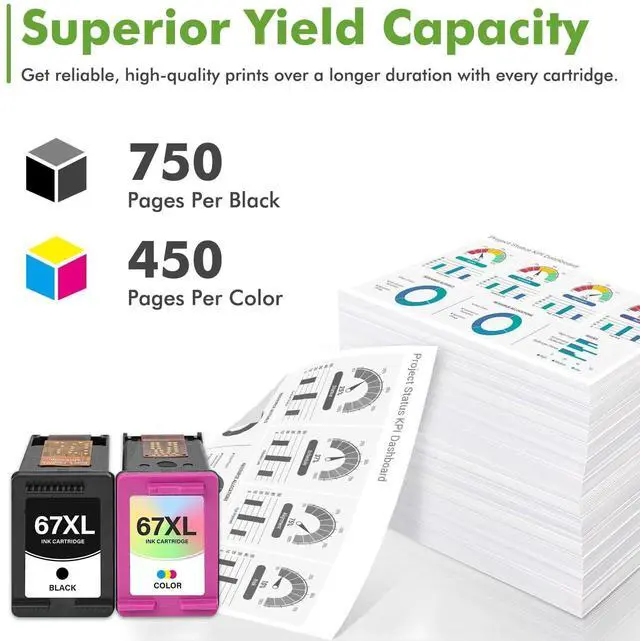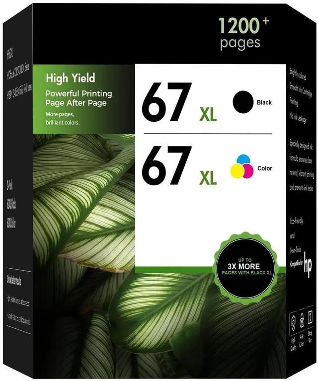 High Page Yield: Up to 2X more prints for ink 67: 750 Pages for 67xl black ink cartridge, 450 Pages for 67xl color ink cartridge (at a coverage of 5%) ^^ Color1 67XL Black, 1 67XL Tri-color ^^ Compatible for Deskjet 2700/2700e/2710e/2720e/2721e/2722/2722e/2723e/2724/2725/2732/2734e/2742e/2752/2752e/2755/2755e/2800/2800e/2827e/2842e/2852e/2855e/4100/4100e/4110e/4120e/4121e/4122e/4123e/4130e/4132e/4152/4152e/4155/4155e/4158e/4175e/4200/4200e/4227e/4252e/4255e/4258e ^^ Compatible for ENVY 6000/6000e/6010e/6020e/6022e/6030e/6032e/6034e/6050e/6052/6052e/6055/6055e/6065/6065e/6075/6075e/6400/6400e/6420e/6422e/6430e/6432e/6450e/6452e/6455e/6458e/6475e