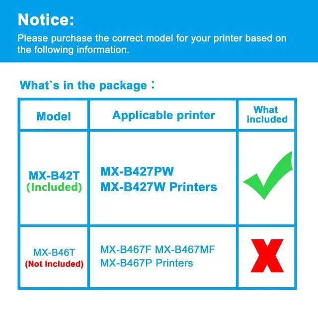 ^^ Compatible Printers: Replacement for Sharp MX-B427PW MX-B427W Printers ^^