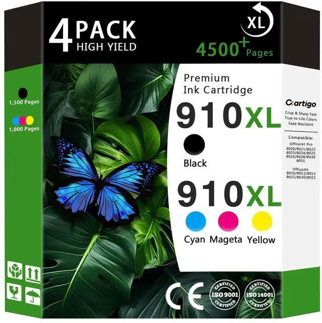 Package Contents: 4 Pack 910XL Ink Cartridges, 1 x Large Black 910XL Ink, 1 x Cyan 910XL Ink, 1 x Magenta 910XL Ink, 1 x Yellow 910XL Ink ^^