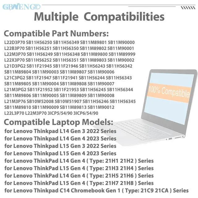 Battery Condition: 100% brand New from Manufacturer. ^^ Compatible Model for Lenovo Thinkpad L14 Gen 3 2022 Series for Lenovo Thinkpad L14 Gen 4 2023 Series for Lenovo Thinkpad L15 Gen 3 2022 Series for Lenovo Thinkpad L15 Gen 4 2023 Series for Lenovo ThinkPad L14 Gen 4 (