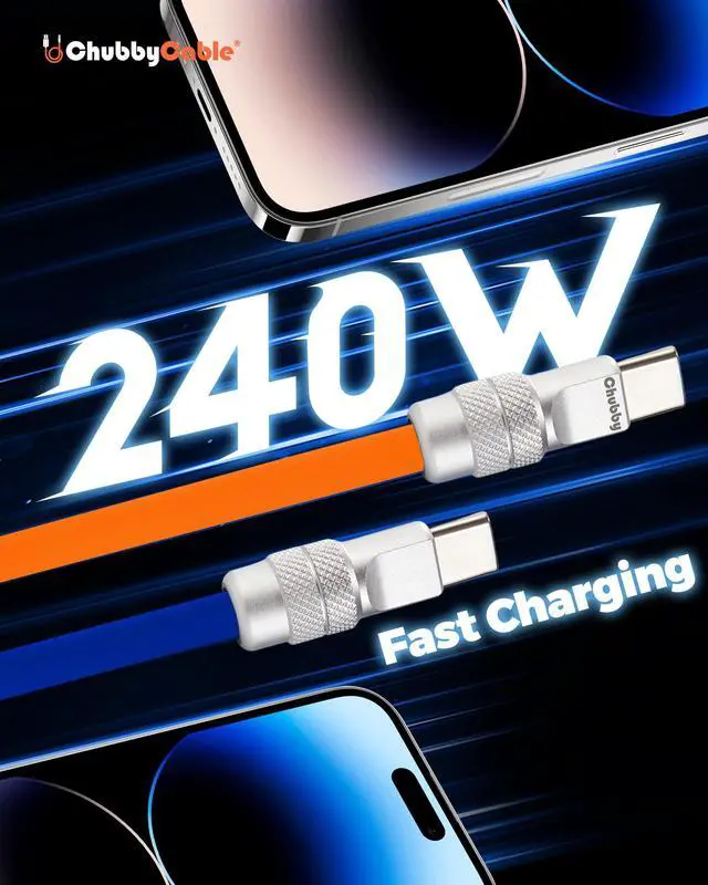 Super-Fast Charging & Data Transfer: ChubbyCable USB-C to USB-C cable delivers up to 240W ultra-fast charging and stable data transfer, while USB-A to USB-C supports 60120W.