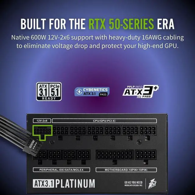 1ST PLAYER NGDP-PLT-1000W PSU Fully Modular PC ATX Power Supply-Computer Power Supplies,80 Plus Platinum/Cybenetics Platinum/PPLT Platinum,ATX 3.1/PCI-E 5.1/Silent FDB Fan with Zero RPM (Black)