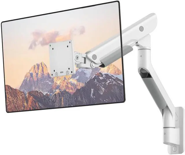 Compatible with 75x75mm and 100x100mm VESA patterns, this monitor wall mount ensures rock-solid support for larger and heavier screens. ^^ Premium Aluminum BuildCrafted from premium-grade aluminum with a remarkable 98% purity, our wall mount monitor arm combines strength, durability, and a sleek professional look. It stands up to frequent adjustments while maintaining a clean aesthetic that complements any valuable setup. ^^ Full Ergonomic FlexibilityThis wall mount achieves your optimal viewing posture with extensive flexibility. Enjoy effortless ergonomic tuning with +60 to -50 tilt, 90 swivel and 90 rotation. Easily extend your screen up to 24.3 from the wall or fold it back to 5.2", with a 11.6 height range to match your perfect and healthy posture for gaming, work, or exercising, etc.
