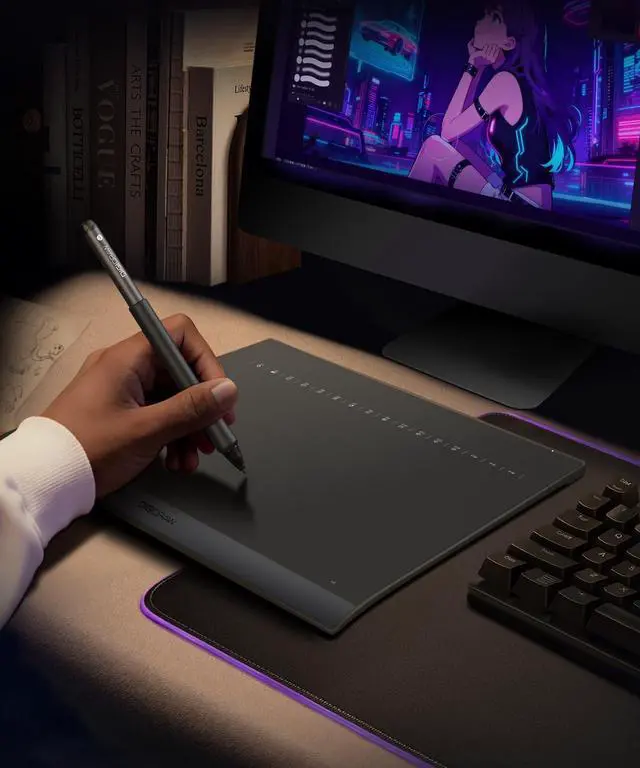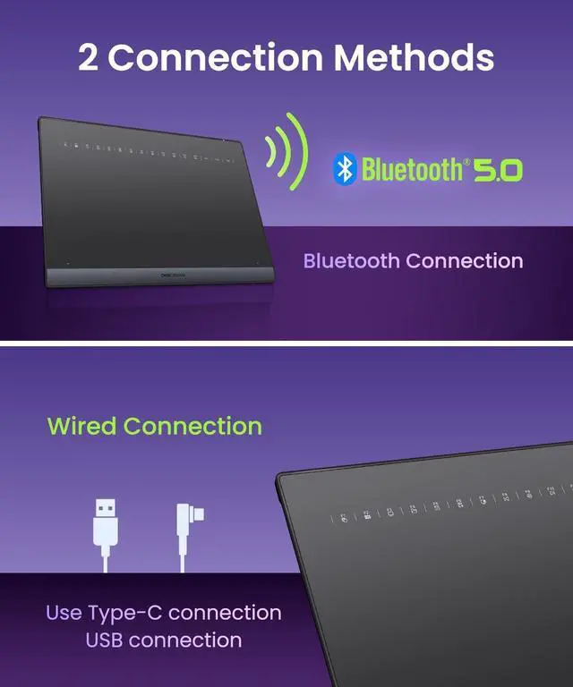 ^^ Seamless Bluetooth 5.0 & Dual-Mode Connectivity Connect instantly via Bluetooth 5.0 (133pps) or wired connection (300pps) across Windows, macOS, ChromeOS, and Android 14+, supporting both landscape and portrait modes. The Win_ 3.0. 1 driver offers customizable workspaces, key assignments, and drawing angles. ^^ Quick Launch Efficiency at Your Fingertips Trigger 16 soft shortcuts like F1 to F16, and TW610 mode with a simple pen tap. Two additional keys are fully customizable. Includes 8 standard refills, pen stand, USB-C cable for even smoother workflow. ^^ Ergonomic Design & Long-Lasting Battery Draw comfortably for hours with a paper-like cover, curved palm rest, and multi-angle use (0, 90, 180, 270).