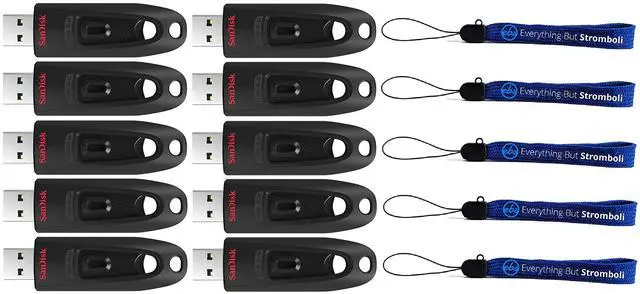 And with password protection, you can rest assured your private files stay private. Secure your files in style with the 3.0 Ultra SanDisk USB Flash Drive. Bundle includes (10) 256 GB Ultra 3.0 USB SanDisk Flash Drives and (5) Everything But Stromboli Lanyards.