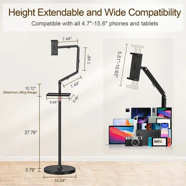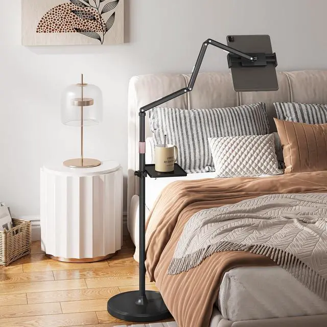 Removable & Versatile Tray: The floor iPad stand includes a handy, removable tray. It's ideal for storing your stylus, phone, snacks, or remote control, so all your essentials are within easy reach.