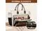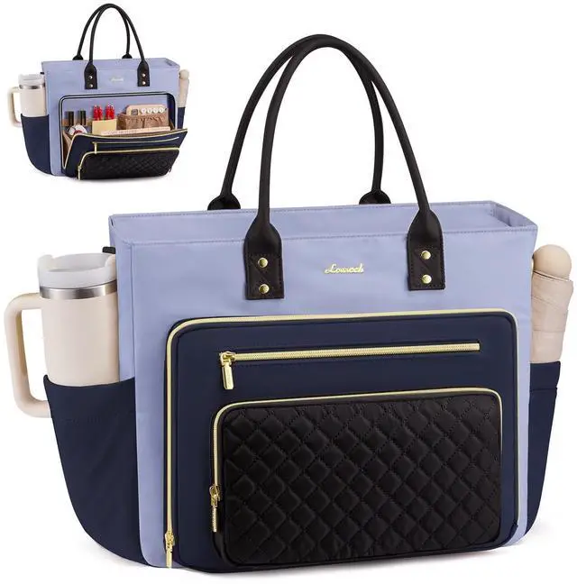With Large Cup Holder: Designed for your large water bottle, our laptop tote bag features an elastic side pocket that holds up to 30oz. The innovative design allows the cup's handle to fit perfectly, ensuring stability and easy access. This dedicated side pocket is ideal for those always on the go, combining style with functionality. Ideal for professionals, travelers alike. ^^ Ample Storage & Padded Laptop Compartment: this laptop bag features a padded laptop sleeve for excellent impact protection, ideal for work, business, travel, or everyday use. The spacious main compartment easily accommodates books, folders, and more, making it versatile as a teacher bag or nurse bag. Perfect for new parents as a diaper bag, it organizes baby essentials like clothes, diapers, and bottles efficiently. ^^ Work & Travel-FriendlyEffortlessly blend style and function with our versatile tote bag, designed for the modern traveler. Featuring a luggage sleeve for easy carry-on attachment, adjustable, removable shoulder straps, and sturdy handles. Made from premium waterproof, scratch-resistant material, its your ultimate work, commute, daily use and business travel companion. ^^ Perfect for