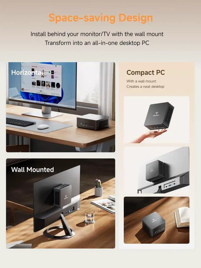 ^^ LPDDR5 & PCIe 4.0 SSDEquipped with 16 GB LPDDR5 (6400 MHz) and two M. 2 2280 PCIe 4.0 SSD slots, supporting up to 4 TB of storage capacity, it offers fast read and ultra-fast write speeds to ensure smooth operation. and fast system response ^^ Multiple Interfaces and Fast NetworkingUM690L slim mini computer has multiple interfaces, including 2xUSB 3.2 Gen2 Type-A, 2xUSB 2.0, 1xUSB4 port (supports Alt PD), 1xHDMI, 1xDisplayPort, 1xAudio. Clear CMOS interface and button. 2.5G WLAN wired network port, equipped with Wi-Fi 6E/BT 5.3 wireless network card, providing stable network connection and fast transmission speed.