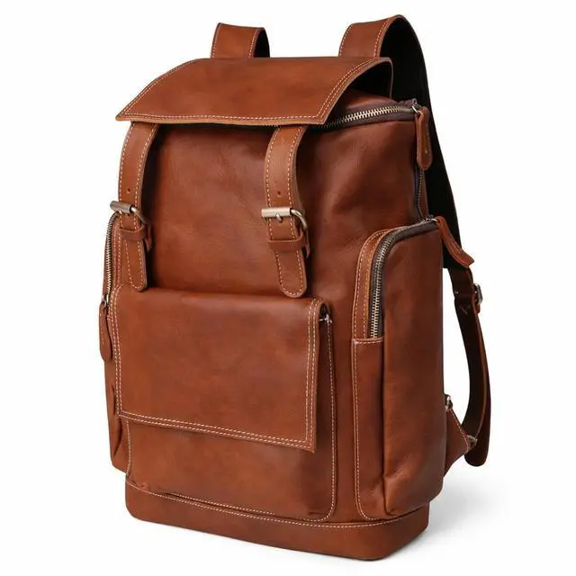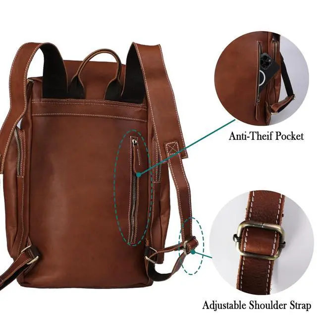 Premium Crazy Horse Leather: Crafted with full-grain heavyweight leather, develops unique vintage patina over time for personalized character, each stitch is reinforced for lifelong durability. The substantial 4.2 lb weight signifies uncompromising quality that outperforms synthetic backpacks.