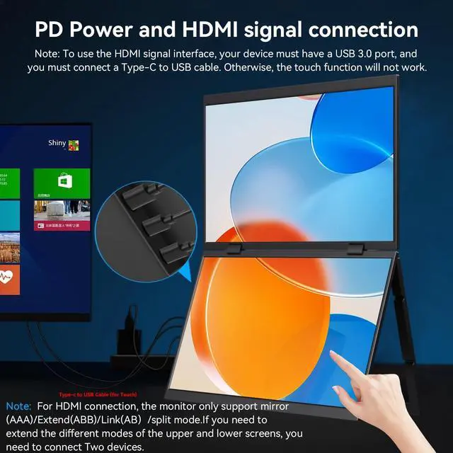 2. When connecting via HDMI cable, an additional USB A-to-USB C cable is required to enable touch functionality. ) ^^ Stacked Triple