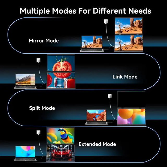 Versatile Multi-Screen Modes: The touchscreen dual portable monitor supports Mirror, Extend, and Split modes. Seamlessly switch between these three modes by connecting devices via PD+USB-C cable. Easily adjust monitor orientation with flip functionality and gravity-sensing auto-rotation. This dual-screen portable display perfectly suits multitasking, gaming, and streaming scenarios to boost your productivity.